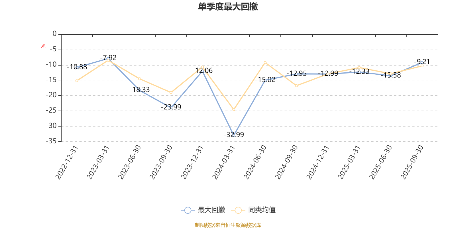 截至10月24日,基金近三年最大回撤为55.29%,同类可比基金排名47/51。单季度最大回撤出现在2024年一季度,为32.99%。