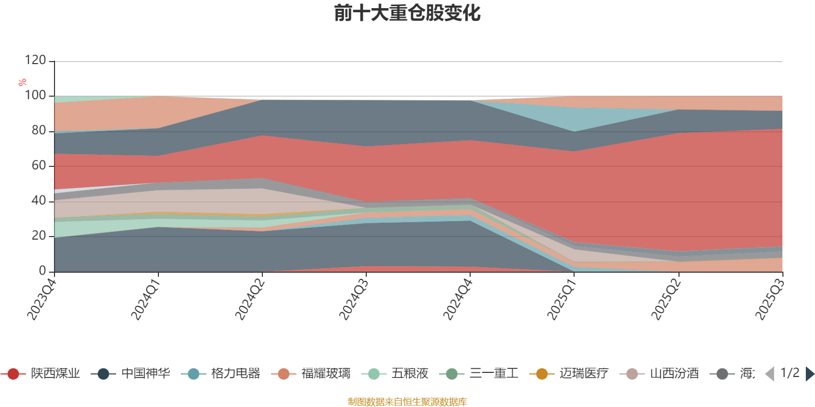 该基金持股集中度较高,近2年前十大重仓股集中度长期超过60%。截至2025年三季度末,基金重仓股分别是腾讯控股、美的集团、贵州茅台、福耀玻璃、海大集团、长江电力。