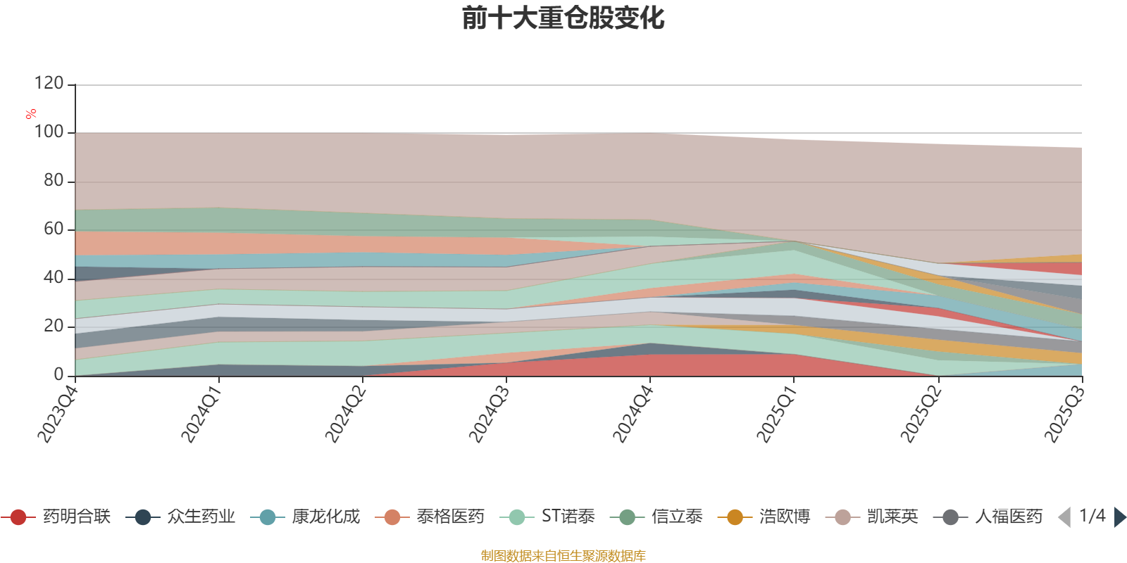 该基金持股集中度较高。截至2025年三季度末,基金十大重仓股分别是科伦博泰生物-B、百利天恒、恩华药业、微创医疗、百济神州、康龙化成、人福医药、浩欧博、华东医药、汇宇制药。