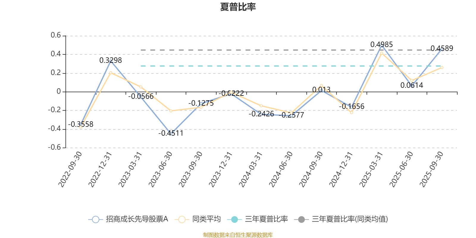 截至9月30日,基金近三年夏普比率为0.2753,位于同类可比基金34/48。