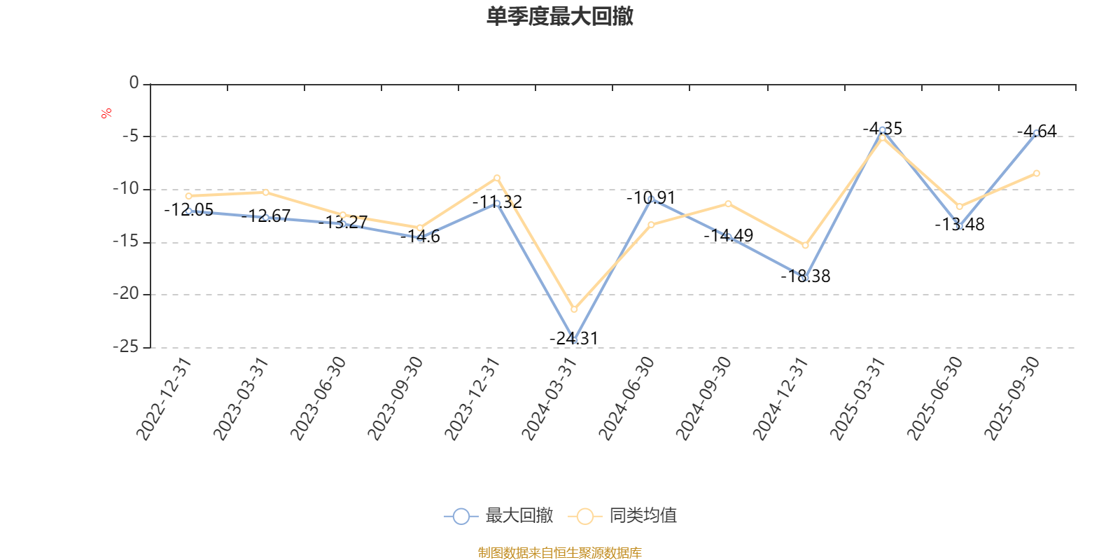 截至10月24日,基金近三年最大回撤为49.53%,同类可比基金排名46/48。单季度最大回撤出现在2024年一季度,为24.31%。