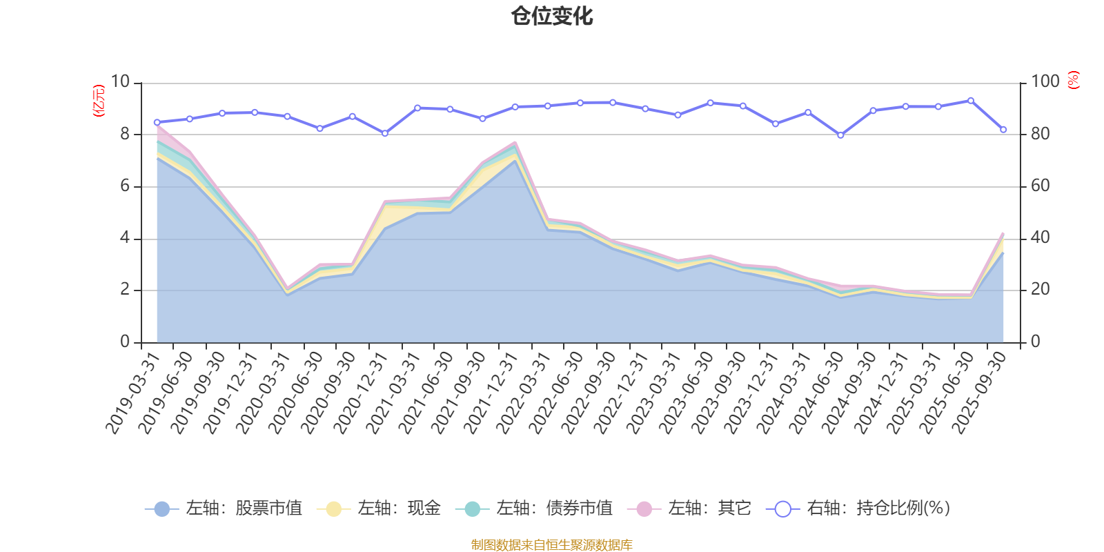 据定期报告数据统计,近三年平均股票仓位为88.32%,同类平均为88.21%。2025年上半年末基金达到93.14%的最高仓位,2024年上半年末最低,为79.84%。