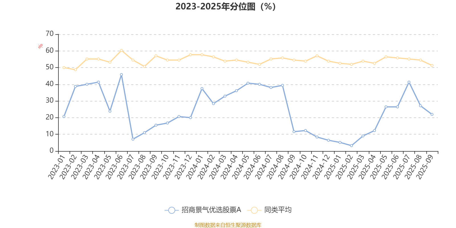 通过所选区间该基金净值增长率分位图,可以观察该基金与同类基金业绩比较情况。图为坐标原点到区间内某时点的净值增长率在同类基金中的分位数。
