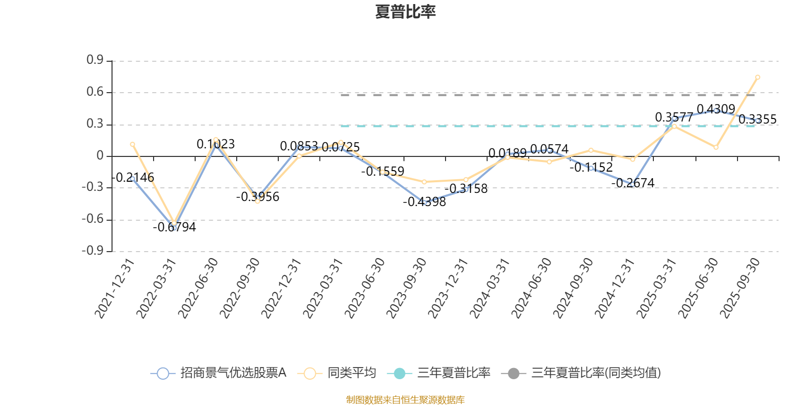 截至9月30日,基金近三年夏普比率为0.2823,位于同类可比基金125/156。