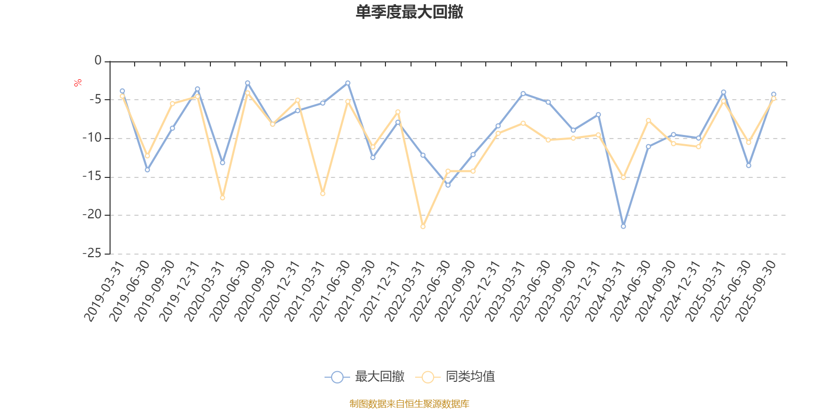 截至10月24日,基金近三年最大回撤为25.9%,同类可比基金排名18/56。单季度最大回撤出现在2024年一季度,为21.43%。