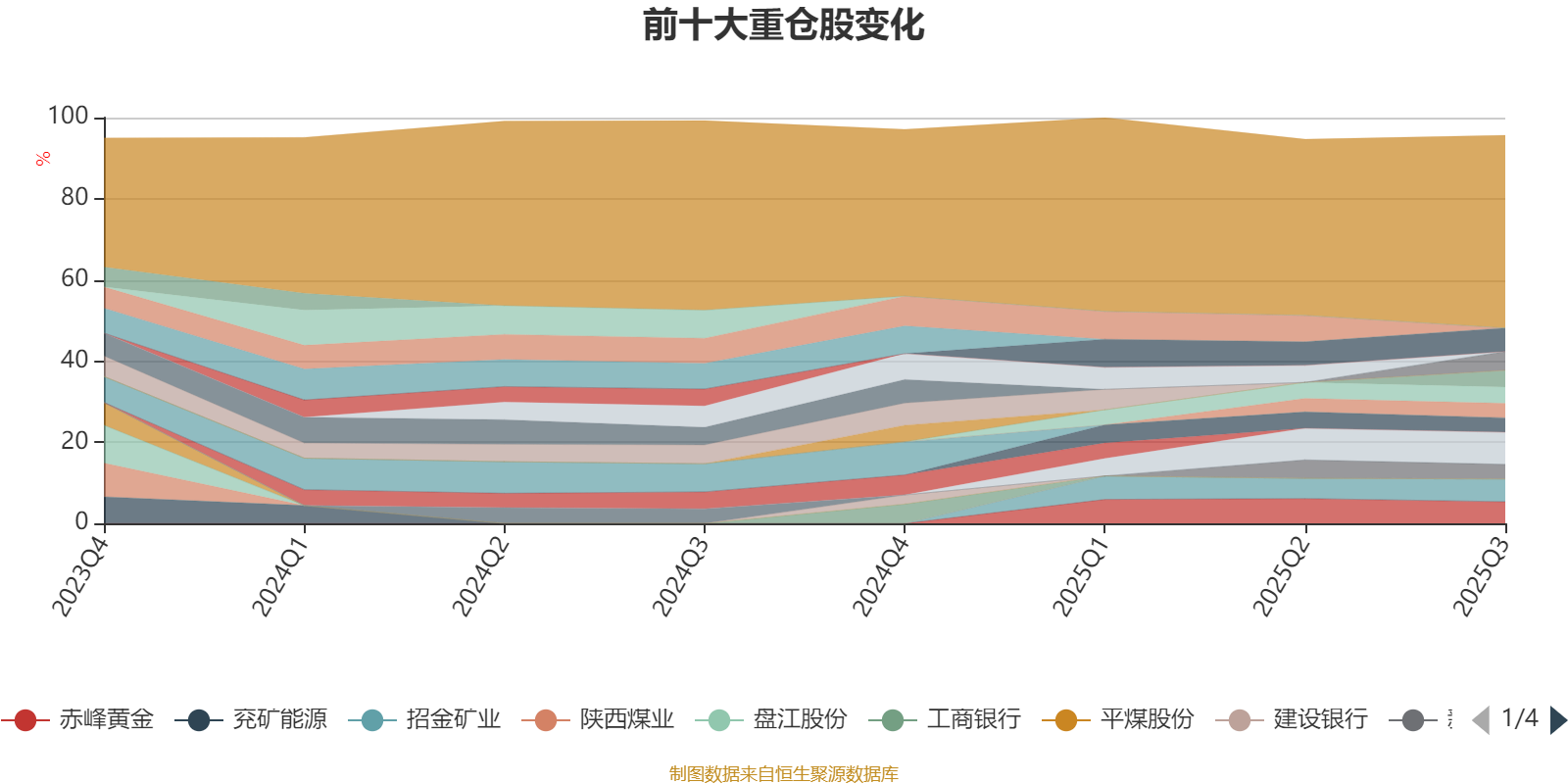 该基金持股集中度较高。截至2025年三季度末,基金十大重仓股分别是信达生物、山东黄金、招金矿业、赤峰黄金、乐普生物-B、中国生物制药、恒瑞医药、新华保险、金风科技、山金国际。