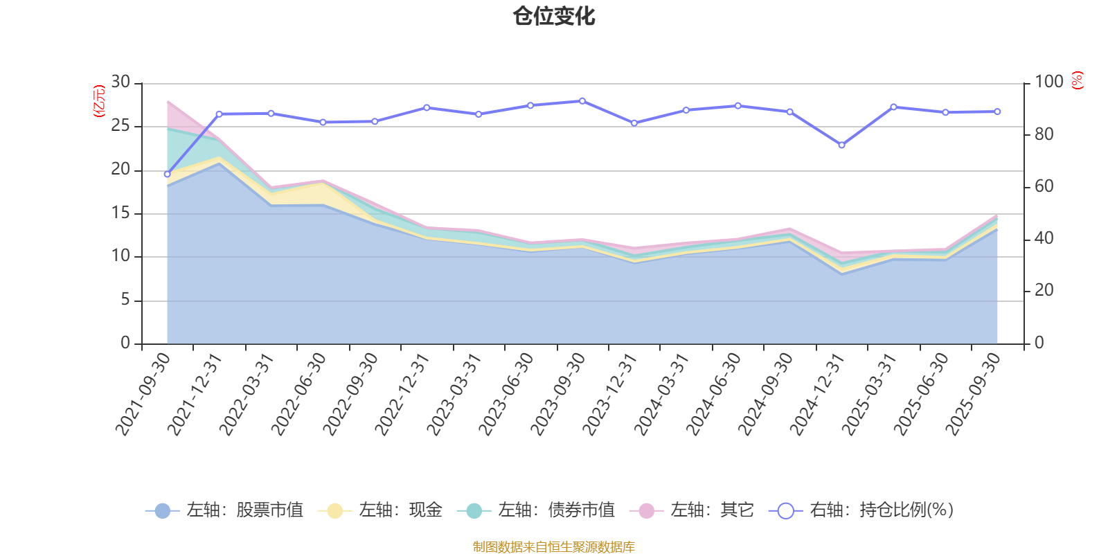 据定期报告数据统计,近三年平均股票仓位为88.57%,同类平均为72.16%。2023年三季度末基金达到93.15%的最高仓位,2021年三季度末最低,为65.08%。