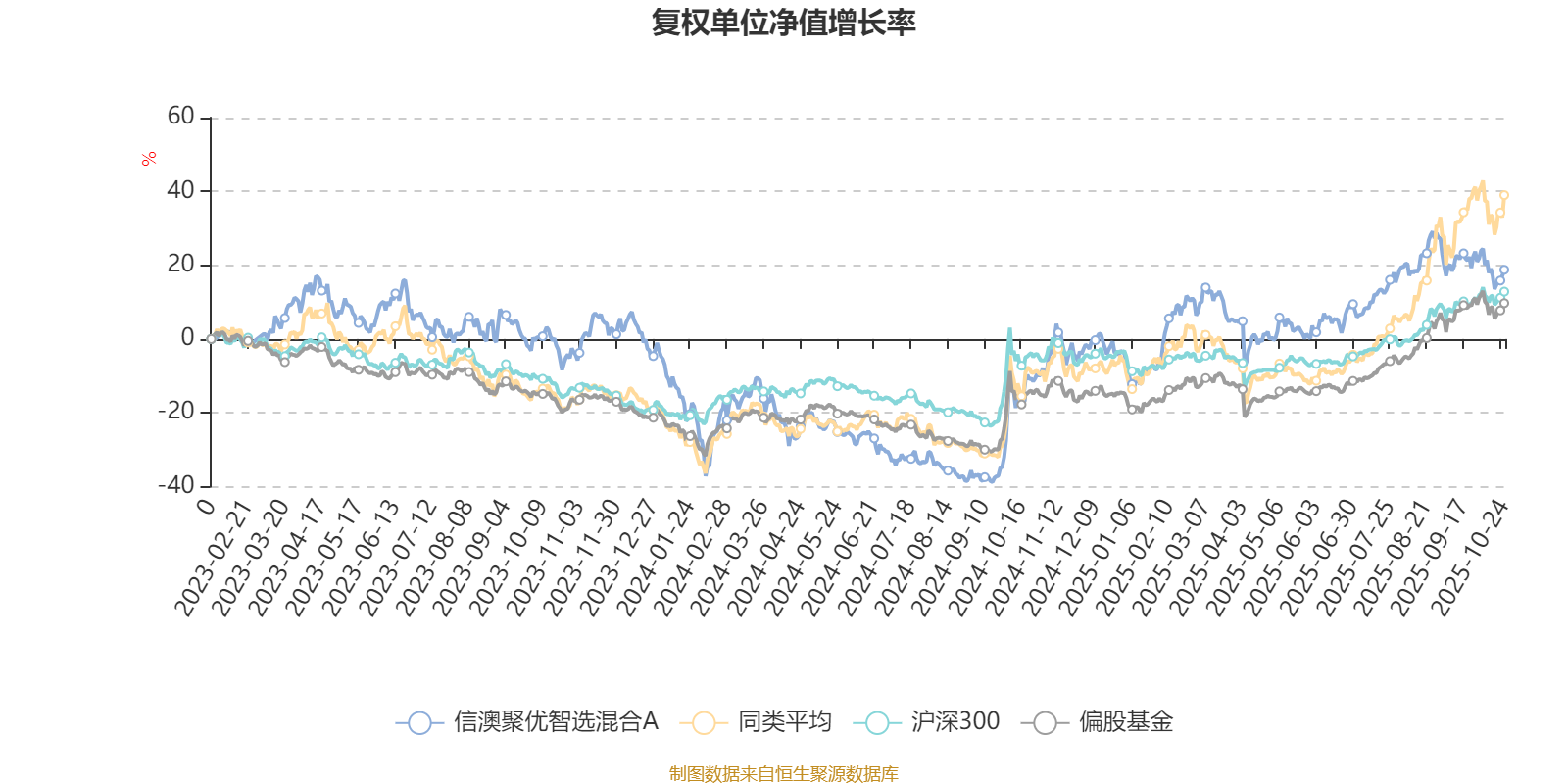 截至10月24日,信澳聚优智选混合A近三个月复权单位净值增长率为3.67%,位于同类可比基金224/229;近半年复权单位净值增长率为18.87%,位于同类可比基金217/229;近一年复权单位净值增长率为34.12%,位于同类可比基金177/213。