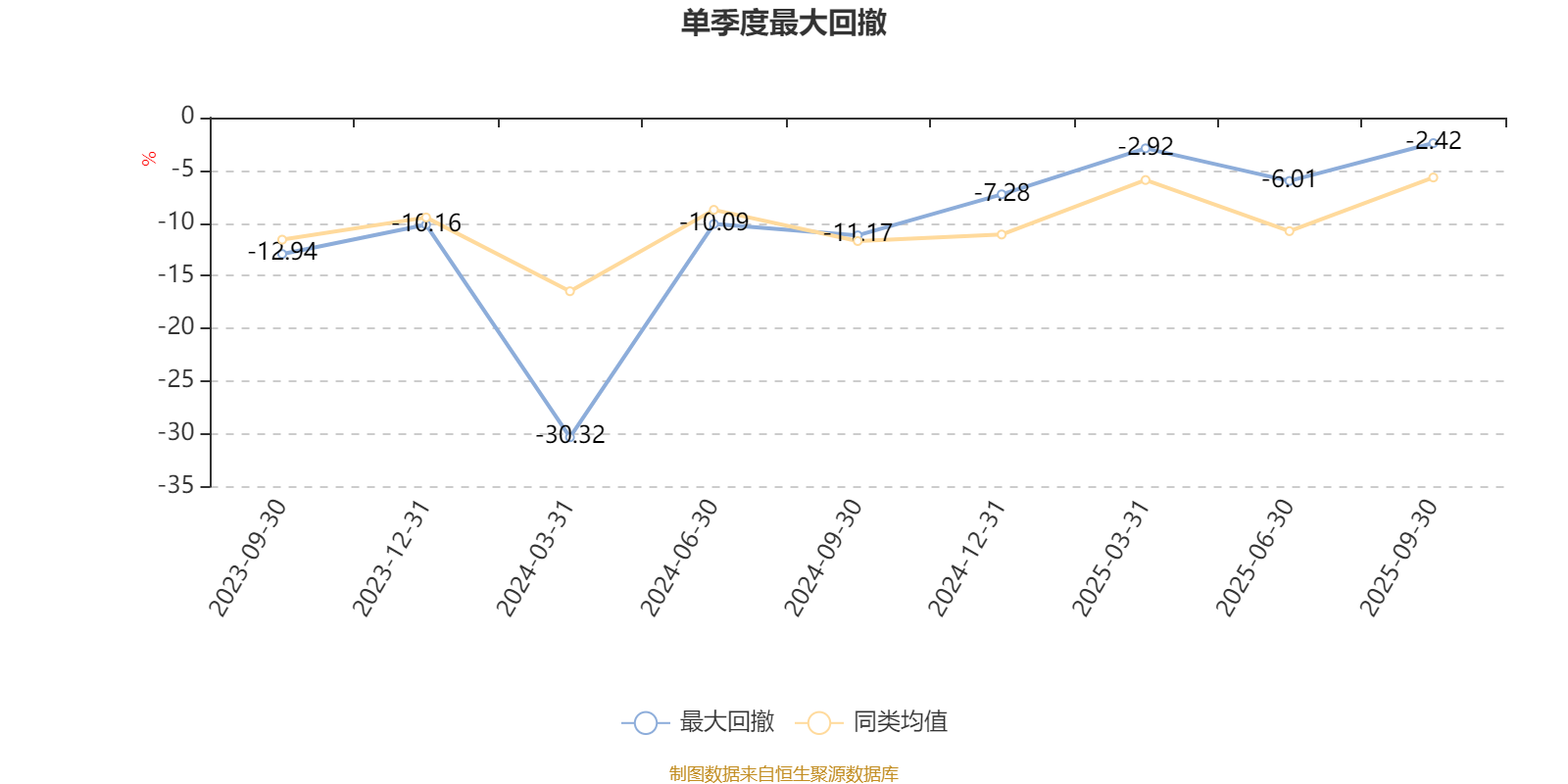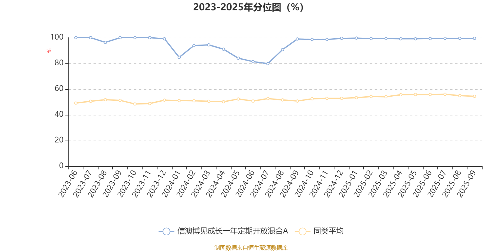 通过所选区间该基金净值增长率分位图,可以观察该基金与同类基金业绩比较情况。图为坐标原点到区间内某时点的净值增长率在同类基金中的分位数。