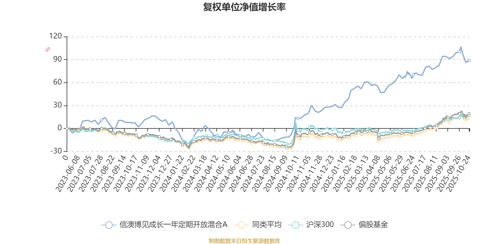 截至10月24日,信澳博见成长一年定期开放混合A近三个月复权单位净值增长率为5.05%,位于同类可比基金507/621;近半年复权单位净值增长率为28.23%,位于同类可比基金295/618;近一年复权单位净值增长率为66.38%,位于同类可比基金34/611。