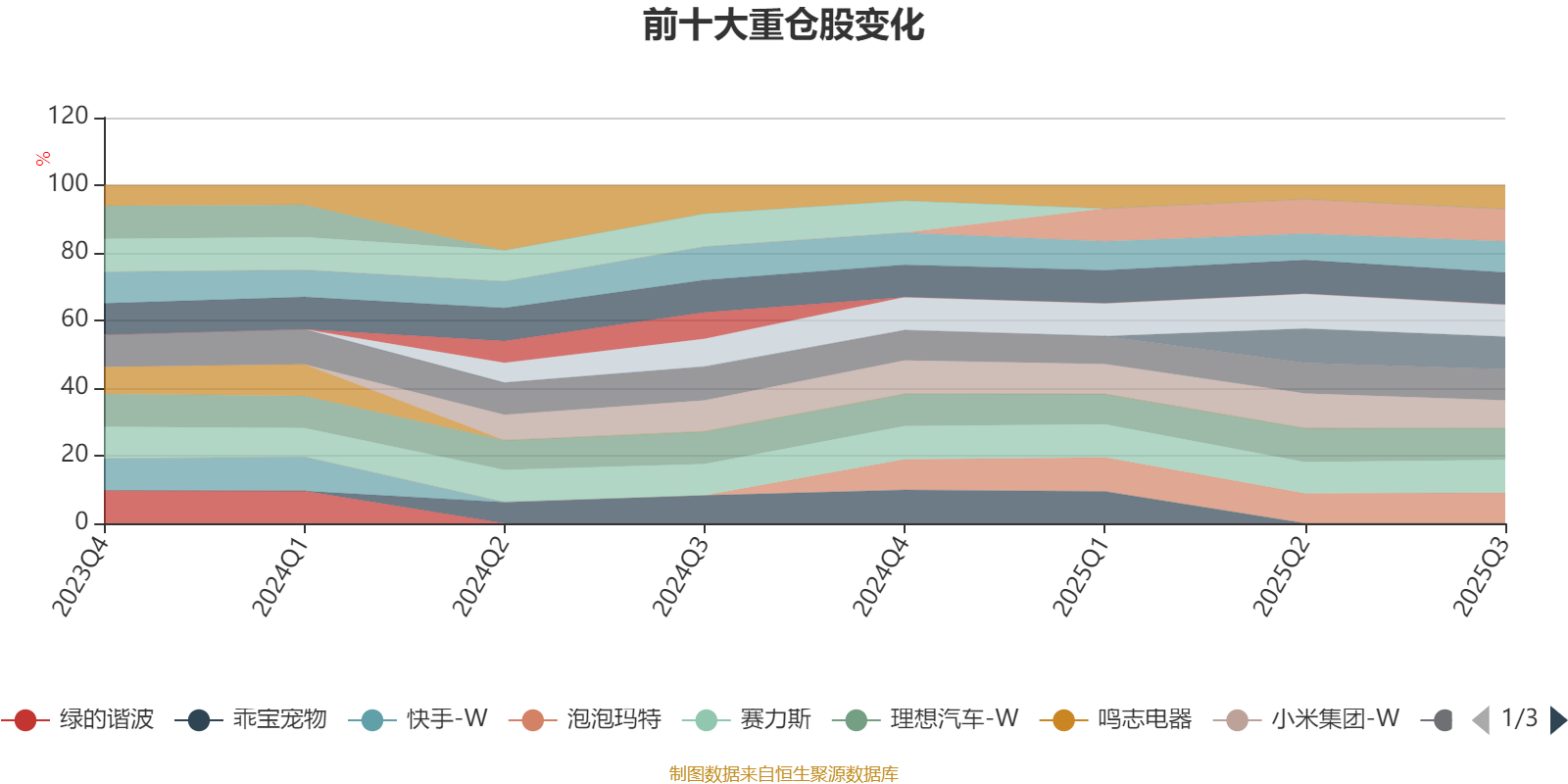 该基金持股集中度较高,近2年前十大重仓股集中度长期超过60%。截至2025年三季度末,基金十大重仓股分别是滨江集团、赛力斯、北汽蓝谷、江淮汽车、理想汽车-W、石头科技、小鹏汽车-W、哔哩哔哩-W、泡泡玛特、小米集团-W。