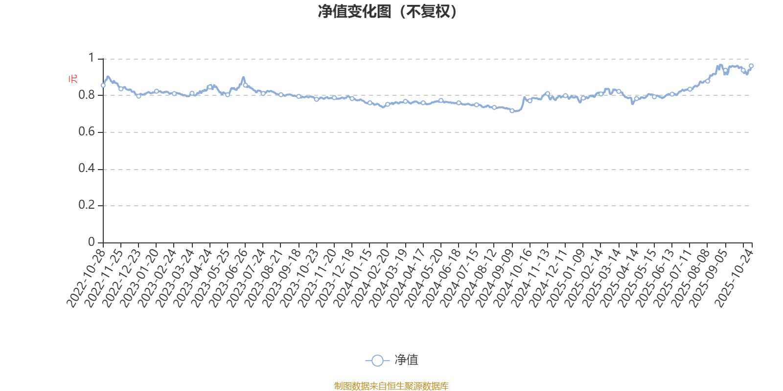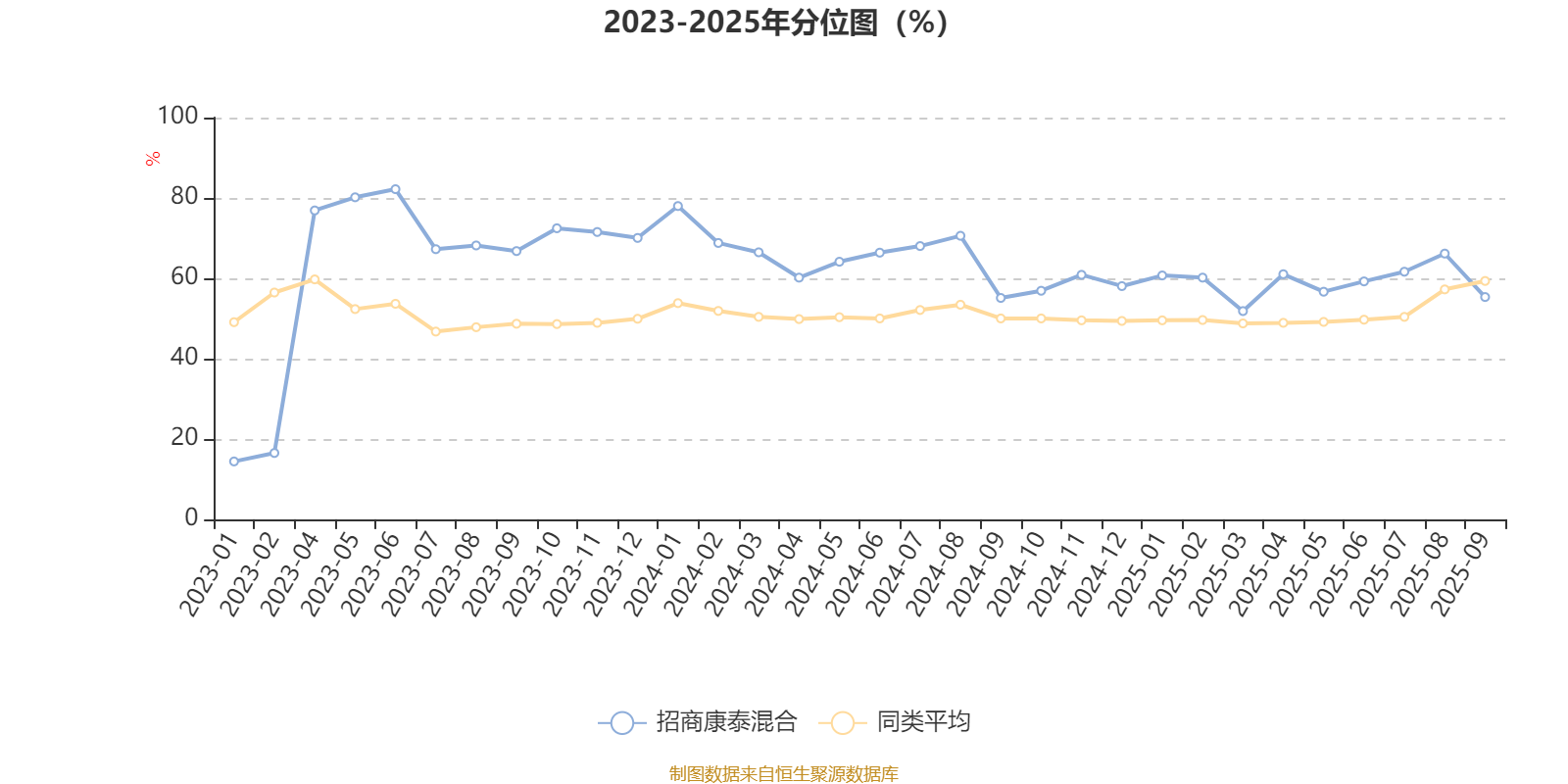 通过所选区间该基金净值增长率分位图,可以观察该基金与同类基金业绩比较情况。图为坐标原点到区间内某时点的净值增长率在同类基金中的分位数。