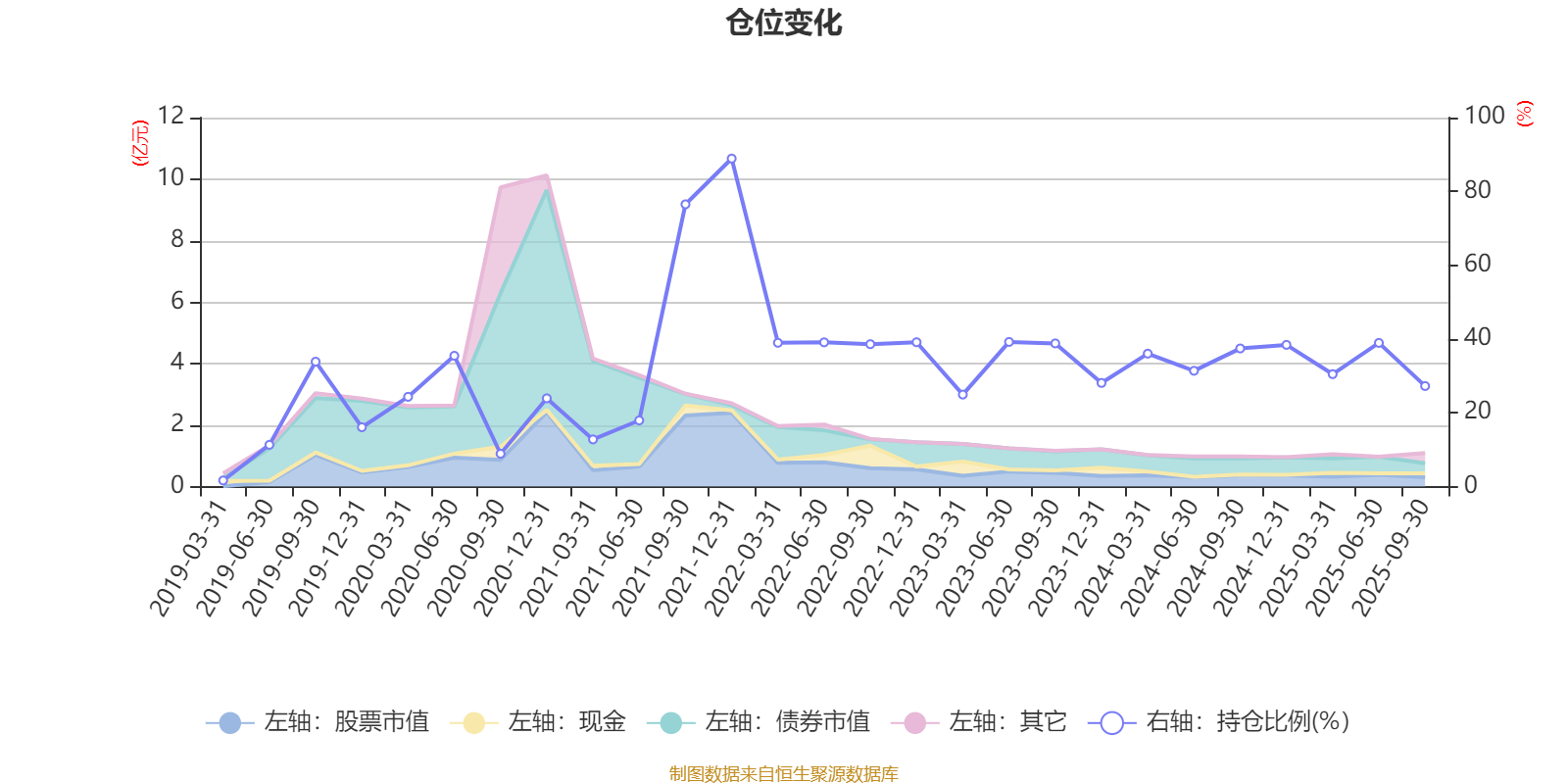 据定期报告数据统计,近三年平均股票仓位为34.17%,同类平均为72.16%。2021年末基金达到88.9%的最高仓位,2019年一季度末最低,为1.66%。