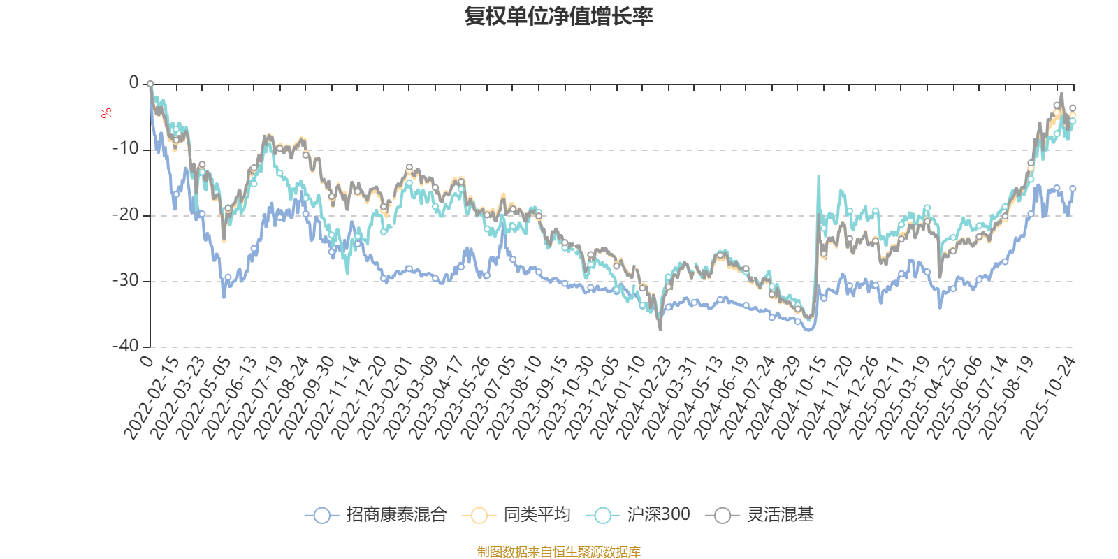 截至10月24日,招商康泰混合近三个月复权单位净值增长率为12.53%,位于同类可比基金577/1287;近半年复权单位净值增长率为22.42%,位于同类可比基金648/1287;近一年复权单位净值增长率为22.58%,位于同类可比基金615/1287;近三年复权单位净值增长率为12.27%,位于同类可比基金680/1286。