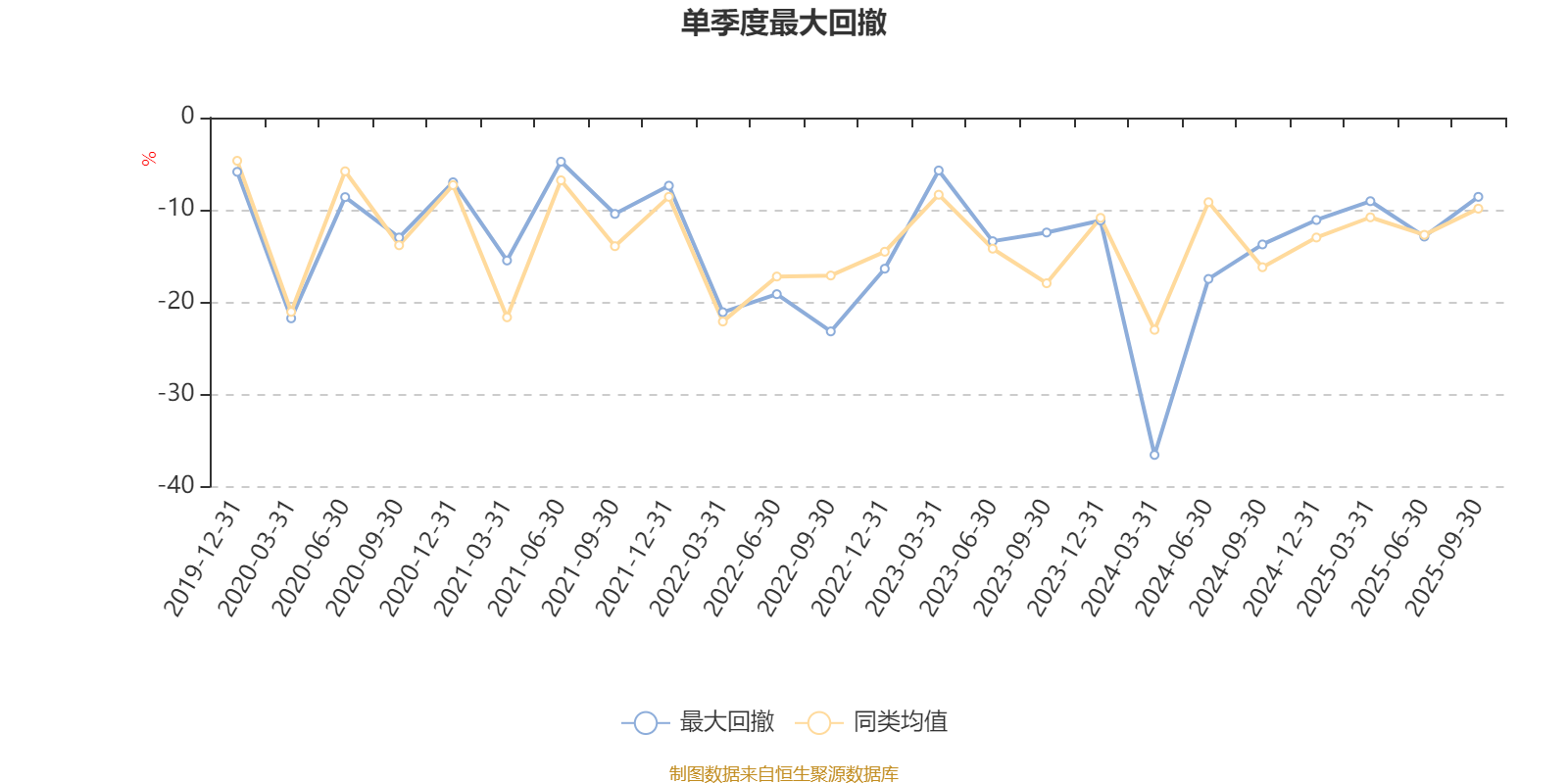 截至10月24日,基金近三年最大回撤为49.19%,同类可比基金排名126/159。单季度最大回撤出现在2024年一季度,为36.57%。