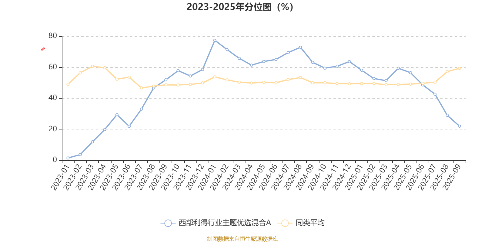 通过所选区间该基金净值增长率分位图,可以观察该基金与同类基金业绩比较情况。图为坐标原点到区间内某时点的净值增长率在同类基金中的分位数。