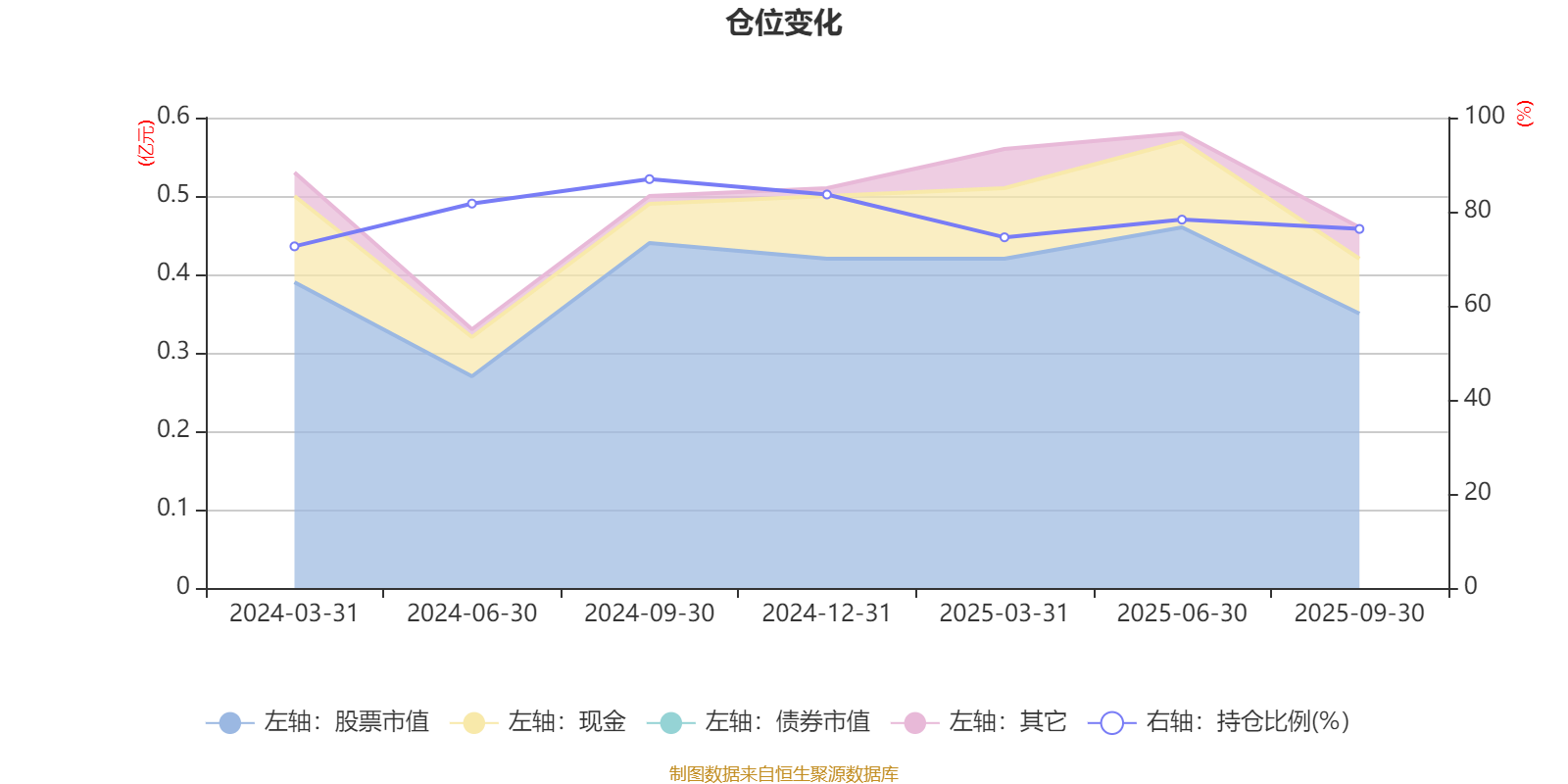 据定期报告数据统计,成立以来平均股票仓位为79.16%,同类平均为83.5%。2024年三季度末基金达到86.92%的最高仓位,2024年一季度末最低,为72.63%。