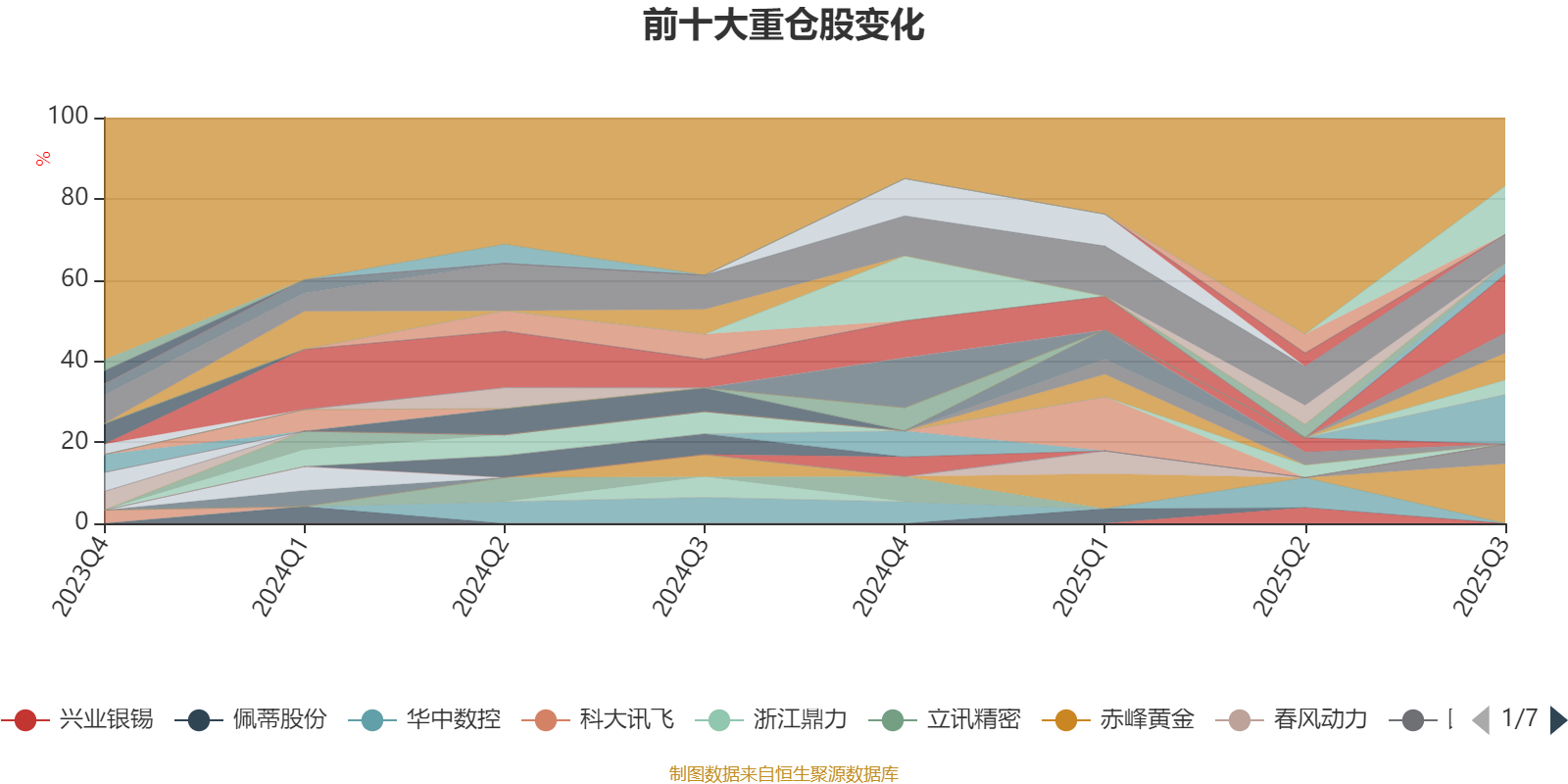 截至2025年三季度末,基金十大重仓股分别是赤峰黄金、山金国际、中国国航、南方航空、赛轮轮胎、明阳电气、兔宝宝、国盾量子、鼎阳科技、华峰化学。