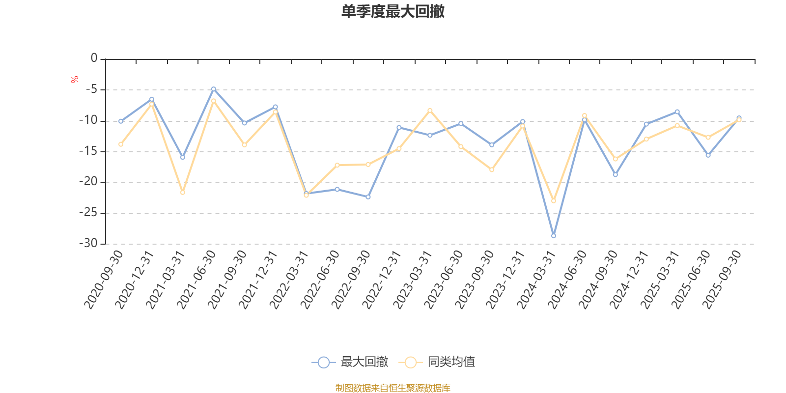 截至10月24日,基金近三年最大回撤为44.13%,同类可比基金排名84/159。单季度最大回撤出现在2024年一季度,为28.69%。