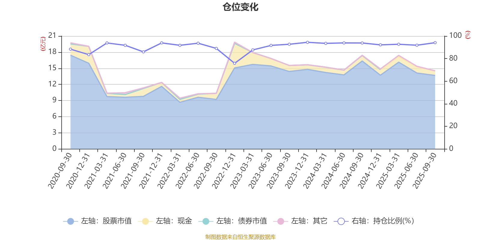 据定期报告数据统计,近三年平均股票仓位为91.2%,同类平均为86.74%。2023年末基金达到94.43%的最高仓位,2022年末最低,为75.82%。