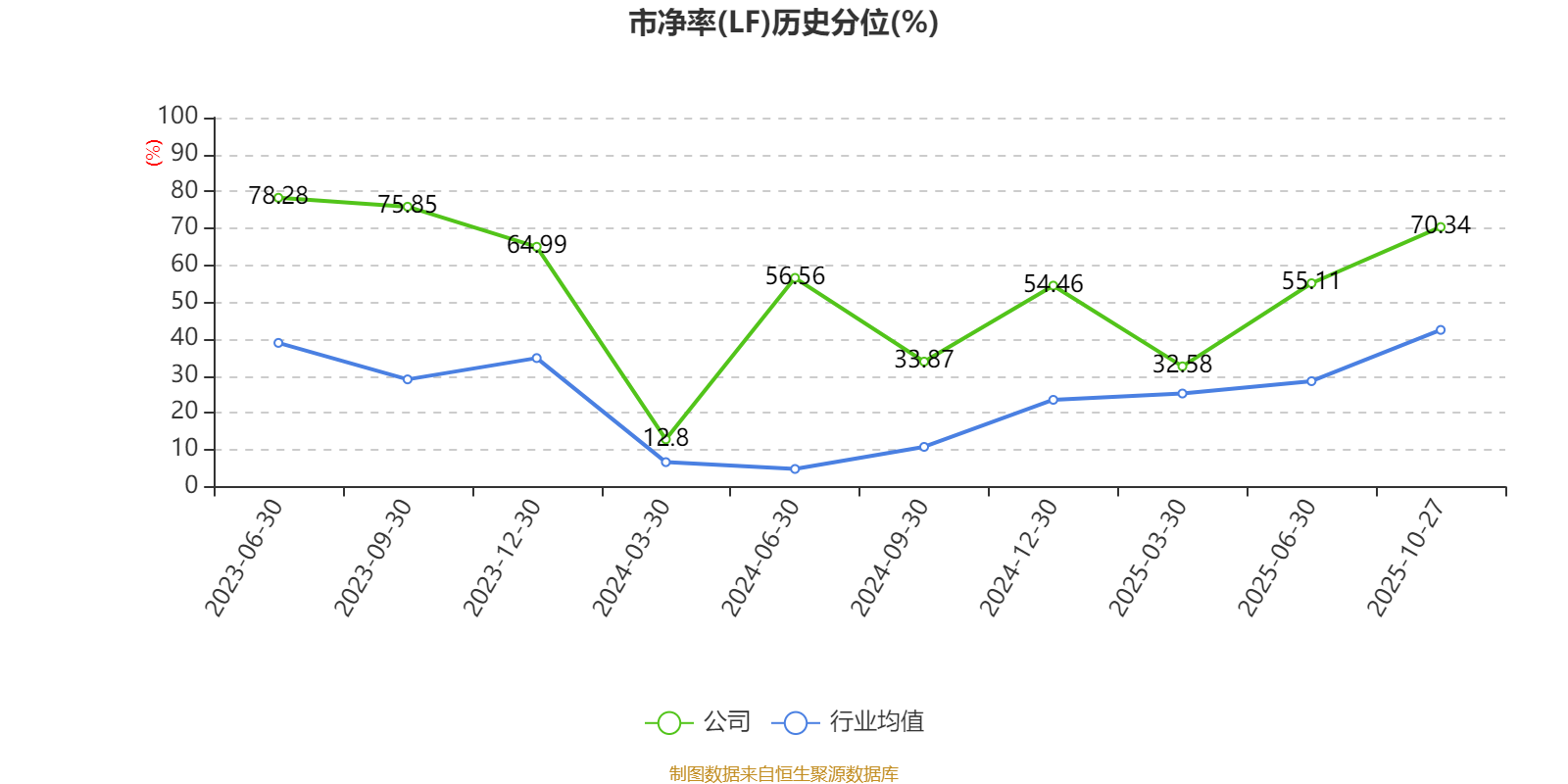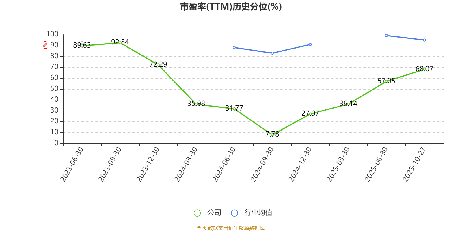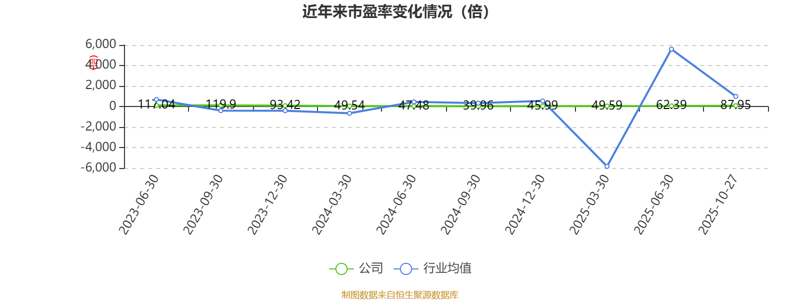 市盈率、市净率为负时,不显示当期分位数,会导致折线图中断。