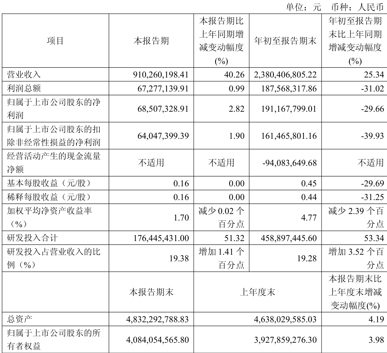 负债重大变化方面,截至2025年三季度末,公司应付票据及应付账款较上年末减少2.29%,占公司总资产比重下降0.68个百分点;其他应付款(含利息和股利)较上年末增加99.71%,占公司总资产比重上升0.63个百分点;应付职工薪酬较上年末减少8.67%,占公司总资产比重下降0.35个百分点;租赁负债较上年末增加148.35%,占公司总资产比重上升0.25个百分点。