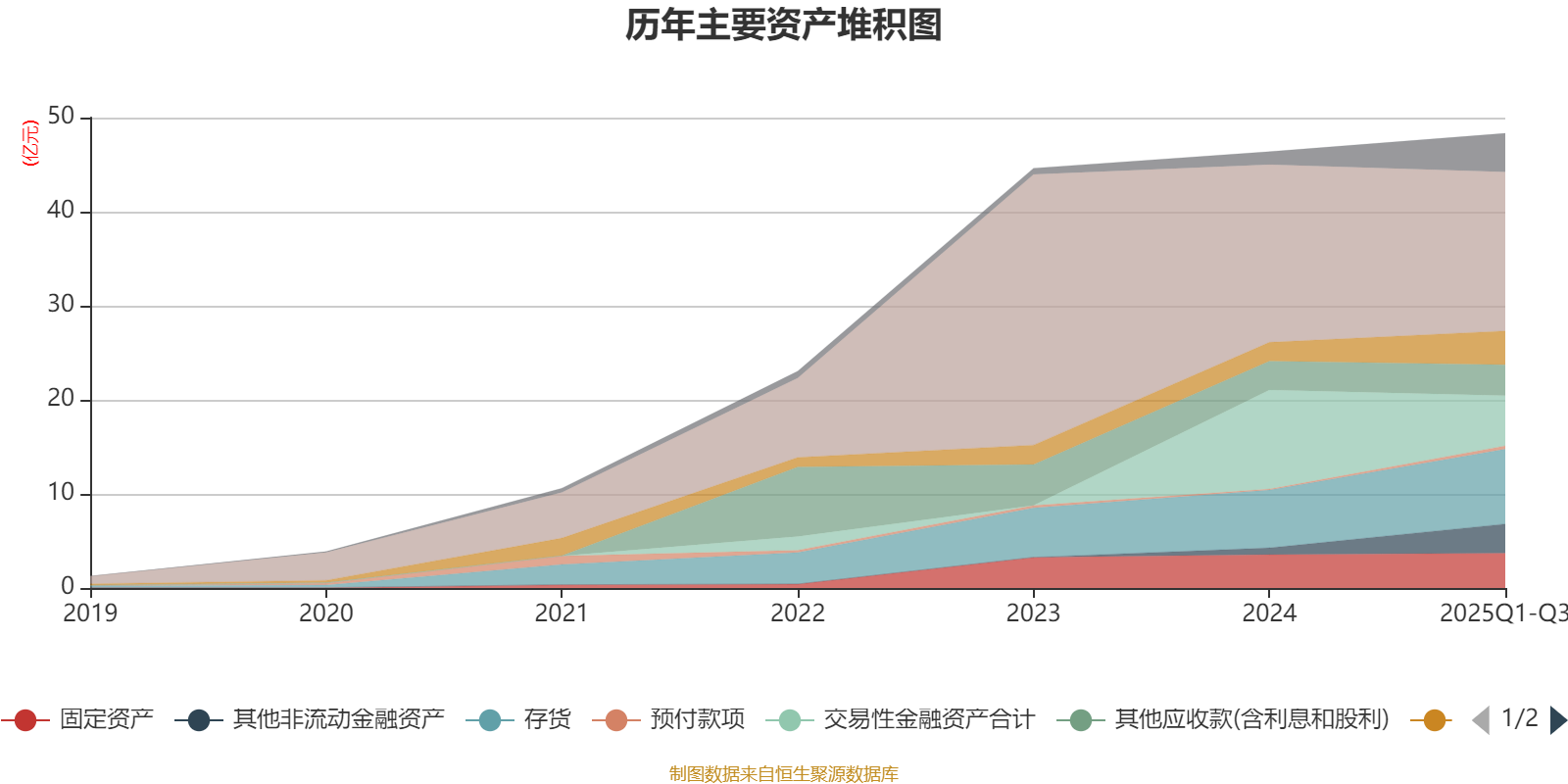 资产重大变化方面,截至2025年三季度末,公司交易性金融资产合计较上年末减少49.5%,占公司总资产比重下降11.7个百分点;货币资金较上年末减少10.55%,占公司总资产比重下降5.76个百分点;其他非流动金融资产较上年末增加327.86%,占公司总资产比重上升4.86个百分点;商誉占公司总资产的3.59%,上年末为0。