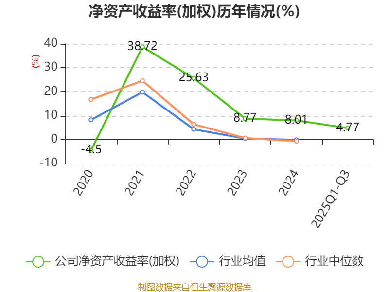 盈利能力方面, 2025年前三季度公司加权平均净资产收益率为4.77%,同比下降2.39个百分点。公司2025年前三季度投入资本回报率为4.05%,较上年同期下降1.98个百分点。