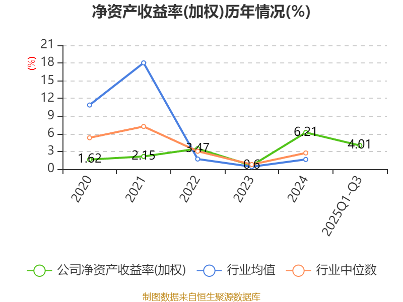 盈利能力方面, 2025年前三季度公司加权平均净资产收益率为4.01%,同比上升1.37个百分点。公司2025年前三季度投入资本回报率为3.6%,较上年同期上升1.3个百分点。