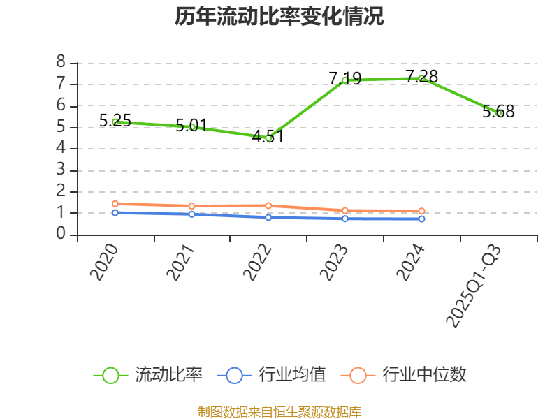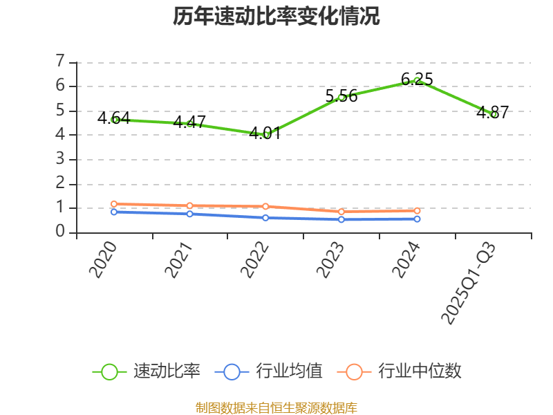 2025年前三季度,公司流动比率为5.68,速动比率为4.87。
