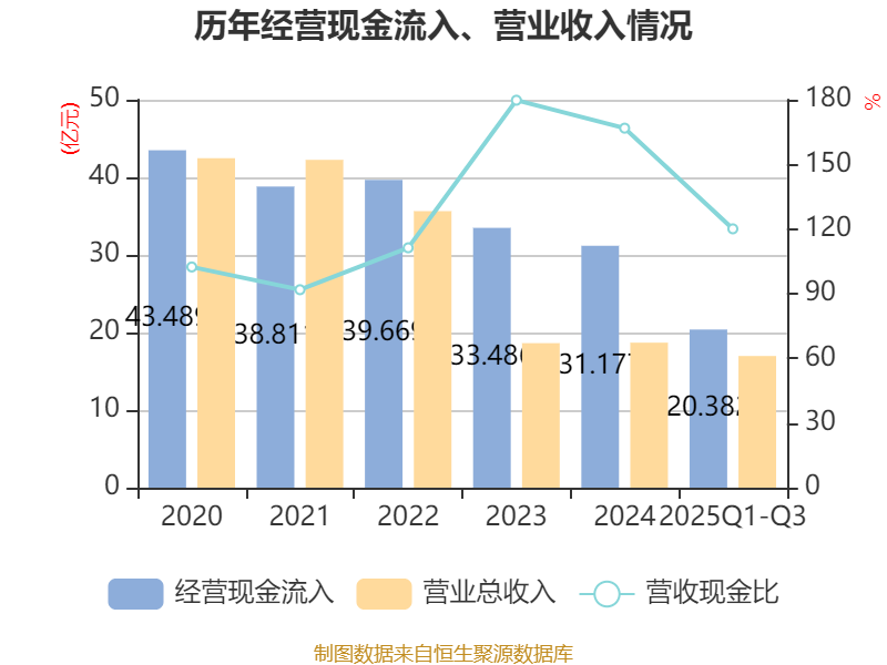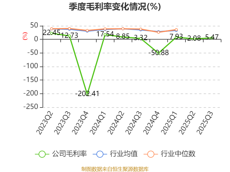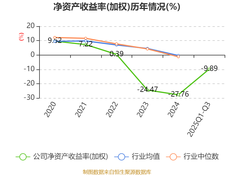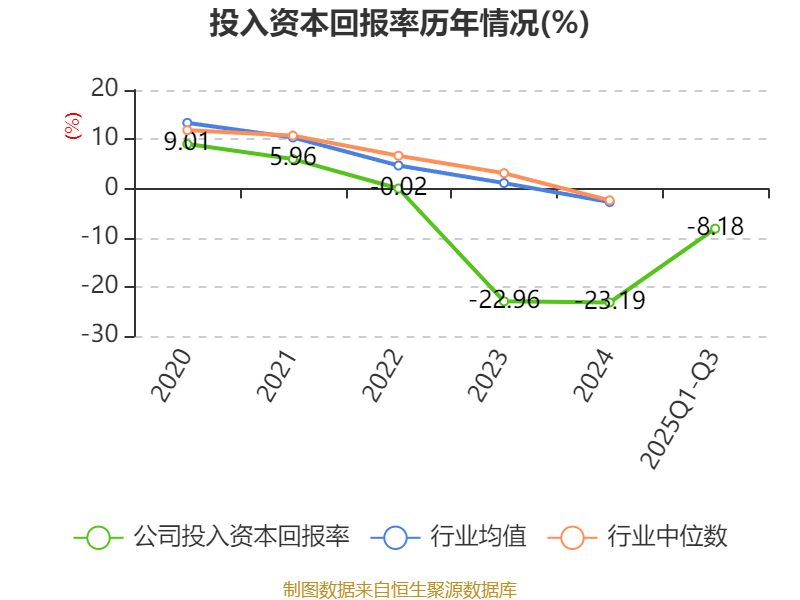 盈利能力方面, 2025年前三季度公司加权平均净资产收益率为-9.89%,同比下降1.23个百分点。公司2025年前三季度投入资本回报率为-8.18%,较上年同期下降0.58个百分点。