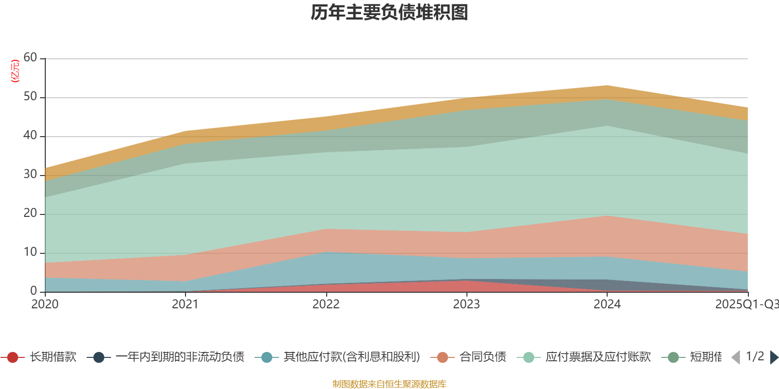 2025年前三季度,公司流动比率为1.34,速动比率为0.92。