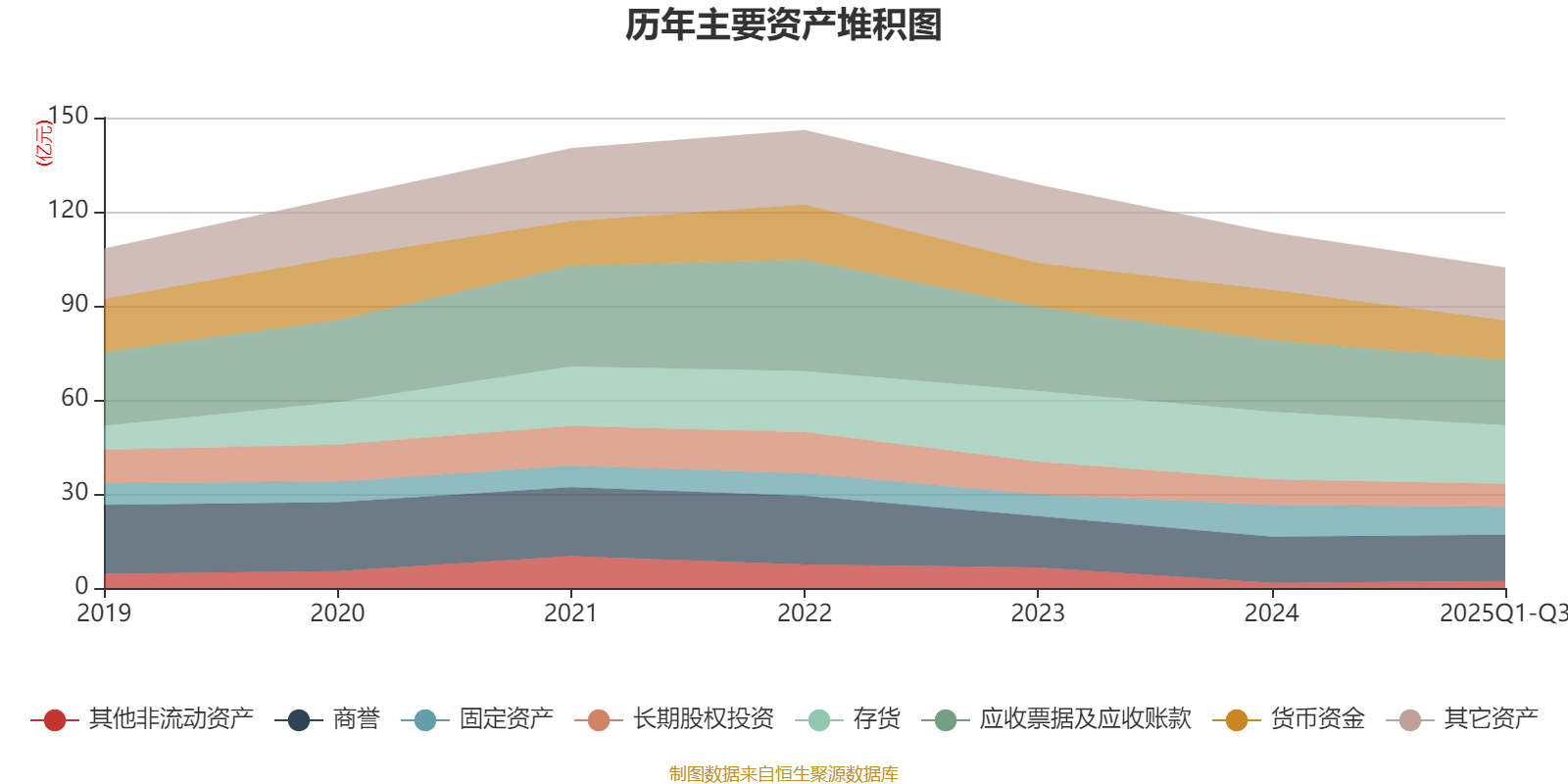资产重大变化方面,截至2025年三季度末,公司货币资金较上年末减少21.59%,占公司总资产比重下降1.84个百分点;商誉较上年末没有变化,占公司总资产比重上升1.42个百分点;长期应收款较上年末减少78.23%,占公司总资产比重下降0.9个百分点;合同资产较上年末增加95.59%,占公司总资产比重上升0.9个百分点。