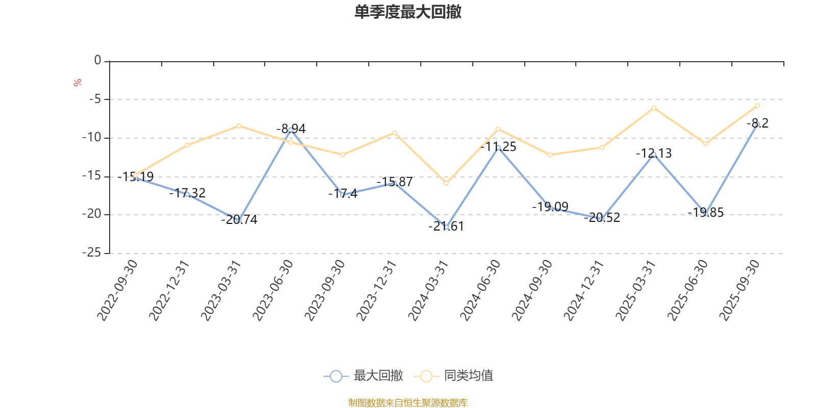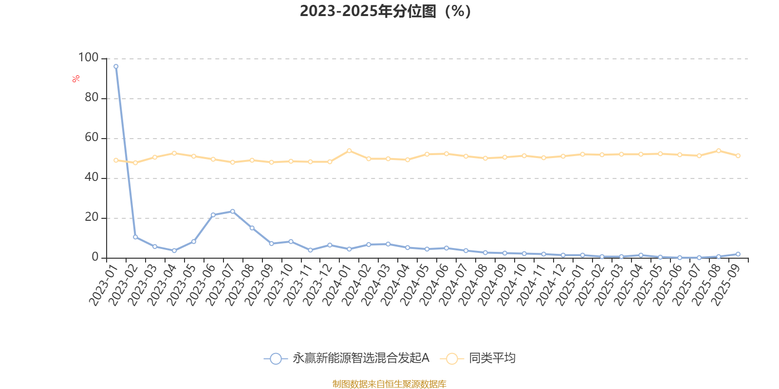 通过所选区间该基金净值增长率分位图,可以观察该基金与同类基金业绩比较情况。图为坐标原点到区间内某时点的净值增长率在同类基金中的分位数。