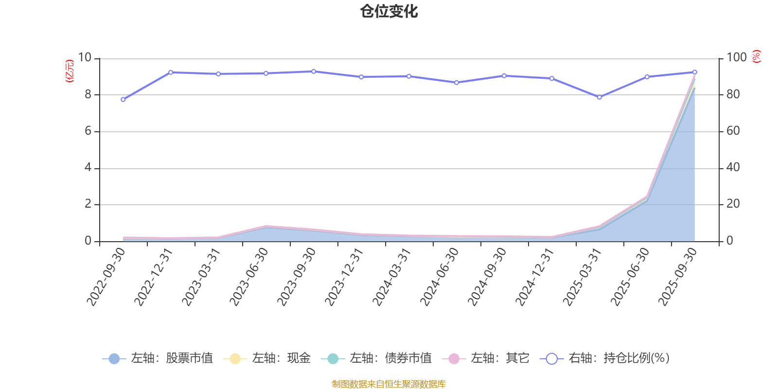 据定期报告数据统计,近三年平均股票仓位为89.68%,同类平均为83.5%。2023年三季度末基金达到92.87%的最高仓位,2022年三季度末最低,为77.53%。