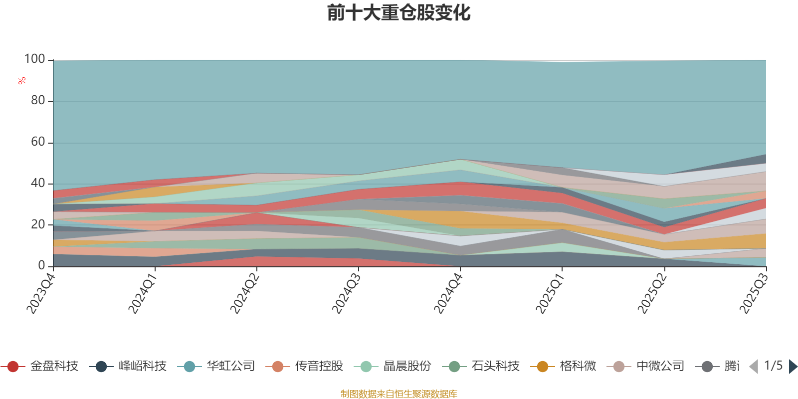 截至2025年三季度末,基金十大重仓股分别是聚辰股份、寒武纪、澜起科技、伟测科技、海光信息、中微公司、华丰科技、华虹公司、仕佳光子、腾景科技。