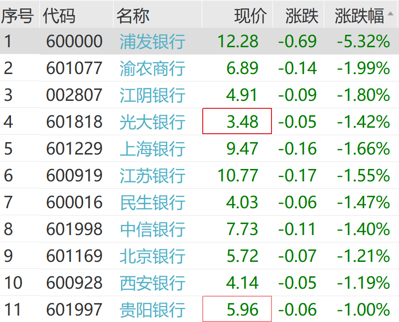 10月28日上午,银行股快速走低。浦发银行直线跳水,盘中跌超5%。