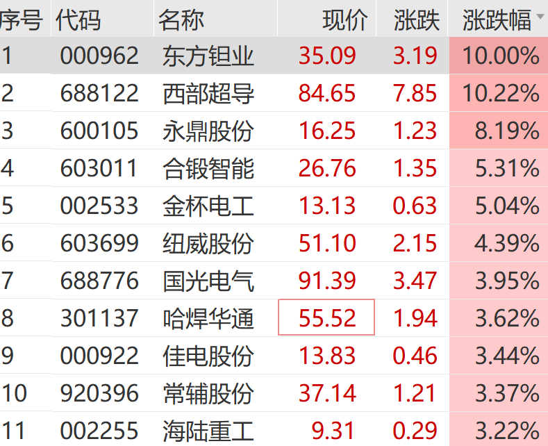 另外,上午可控核聚变板块持续活跃,安泰科技、东方钽业涨停,永鼎股份、西部超导等跟涨。