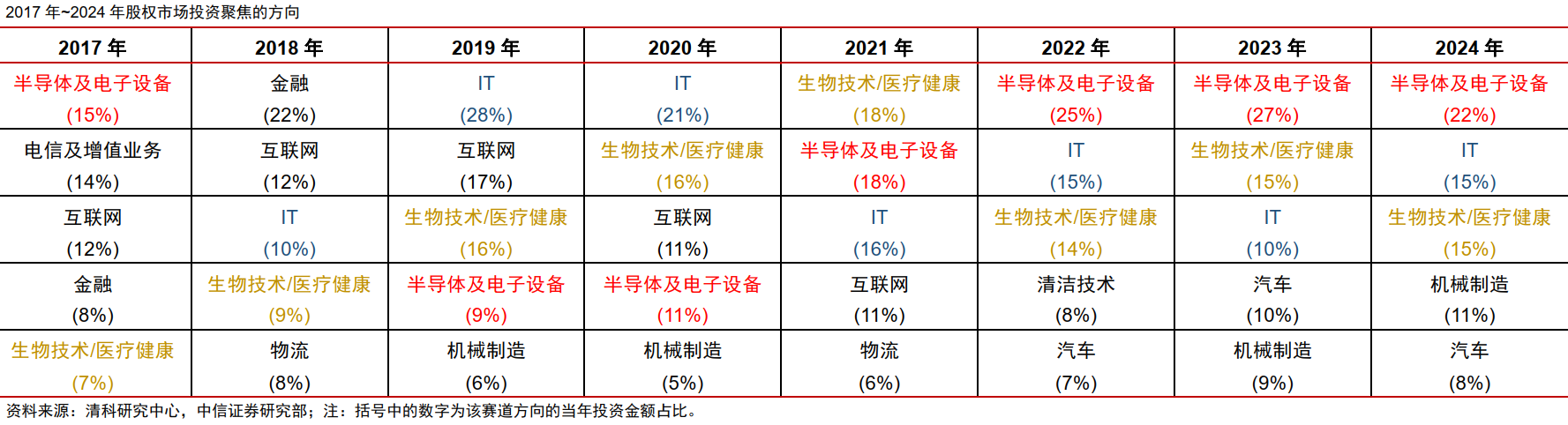 “不仅是券商系私募,整个一级市场投资方向都越来越高度聚焦于”新质生产力“与硬科技领域。”梁宸向界面新闻记者表示,“这种投资方向的聚焦,最早在2021年便有所体现,近年来,随着国家指挥棒效用的发挥,‘新质创新’更加聚焦。”