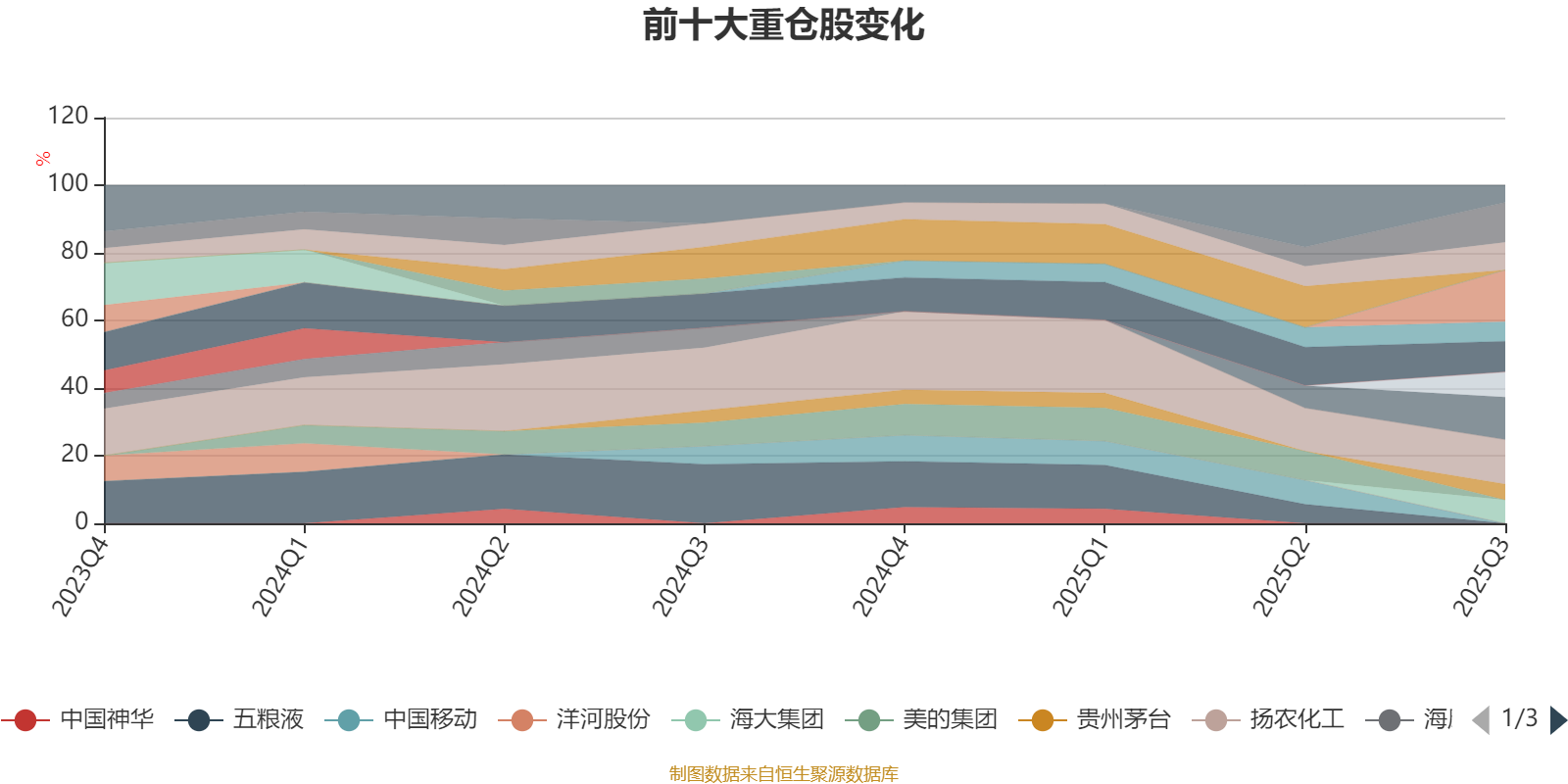 该基金持股集中度较高,近2年前十大重仓股集中度长期超过60%。截至2025年三季度末,基金十大重仓股分别是药明康德、扬农化工、宁德时代、三环集团、招商银行、柏楚电子、芯原股份、海大集团、顺丰控股、贵州茅台。