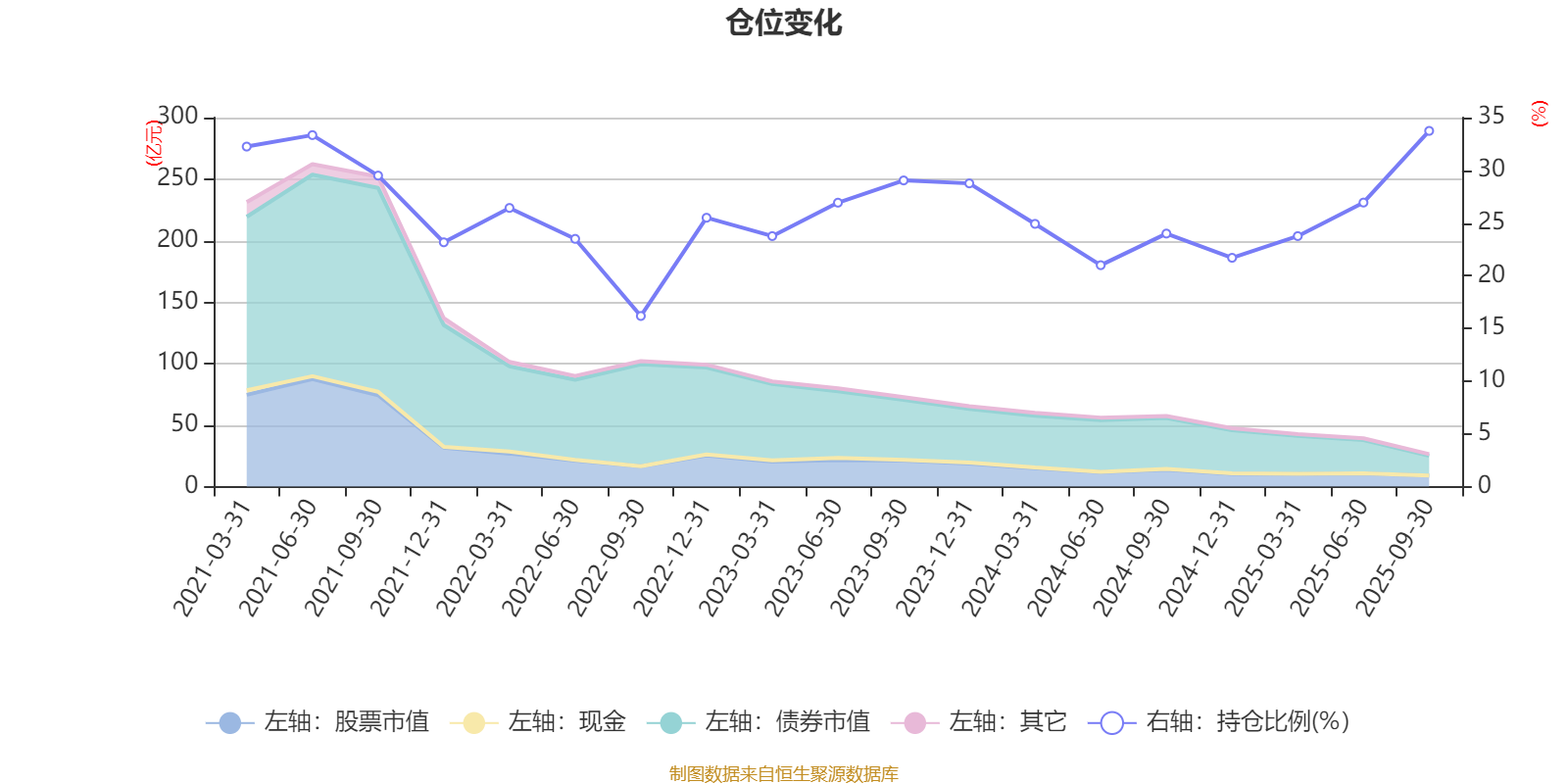 据定期报告数据统计,近三年平均股票仓位为25.84%,同类平均为19.02%。2025年三季度末基金达到33.74%的最高仓位,2022年三季度末最低,为16.18%。