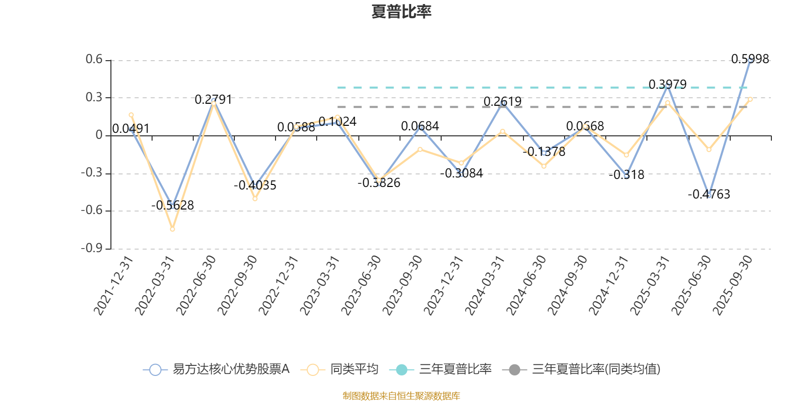 截至9月30日,基金近三年夏普比率为0.3818,位于同类可比基金11/40。