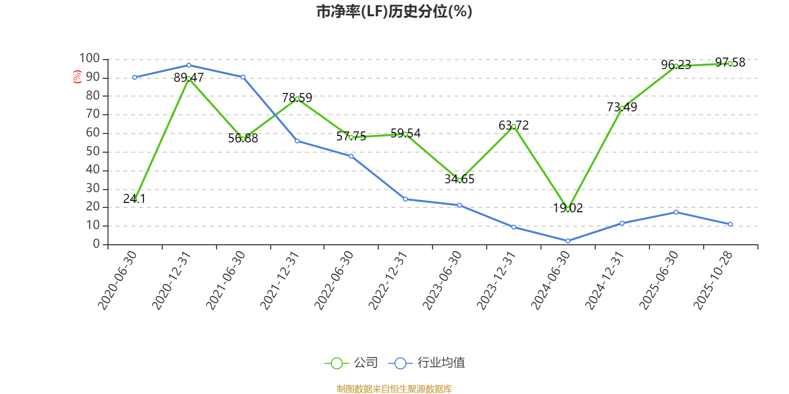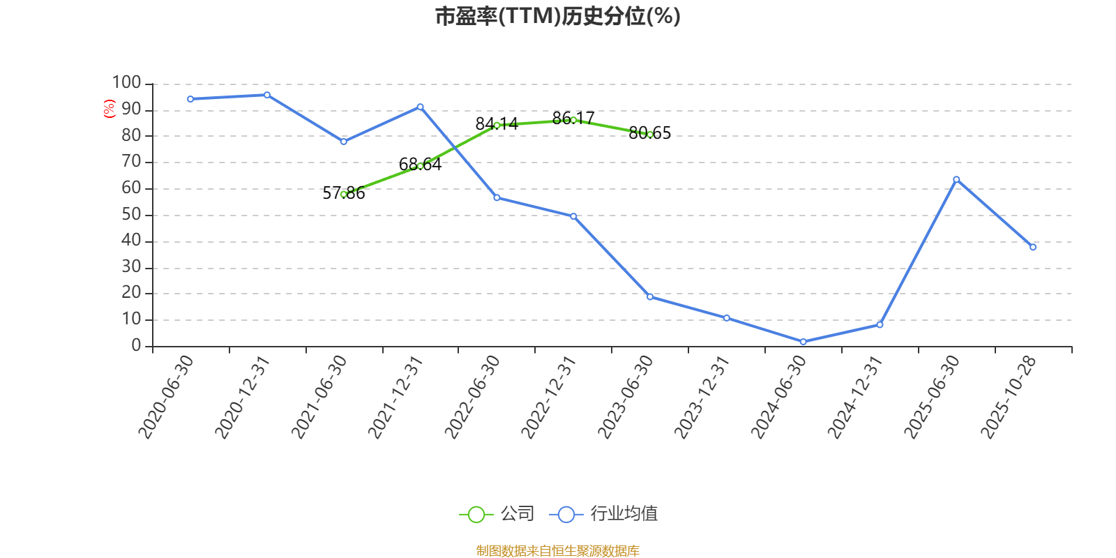市盈率、市净率为负时,不显示当期分位数,会导致折线图中断。