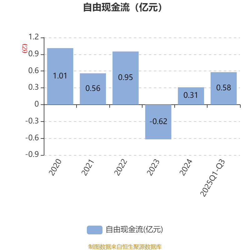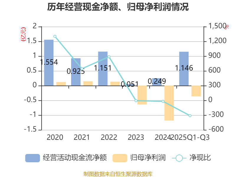 2025年前三季度,公司经营活动现金流净额为1.15亿元,同比增长715.36%;筹资活动现金流净额2052.09万元,同比增加4308.19万元;投资活动现金流净额-1501.78万元,上年同期为-1556.88万元。