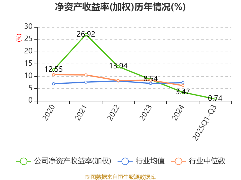 盈利能力方面, 2025年前三季度公司加权平均净资产收益率为0.74%,同比下降1.53个百分点。公司2025年前三季度投入资本回报率为-0.08%,较上年同期下降1.71个百分点。