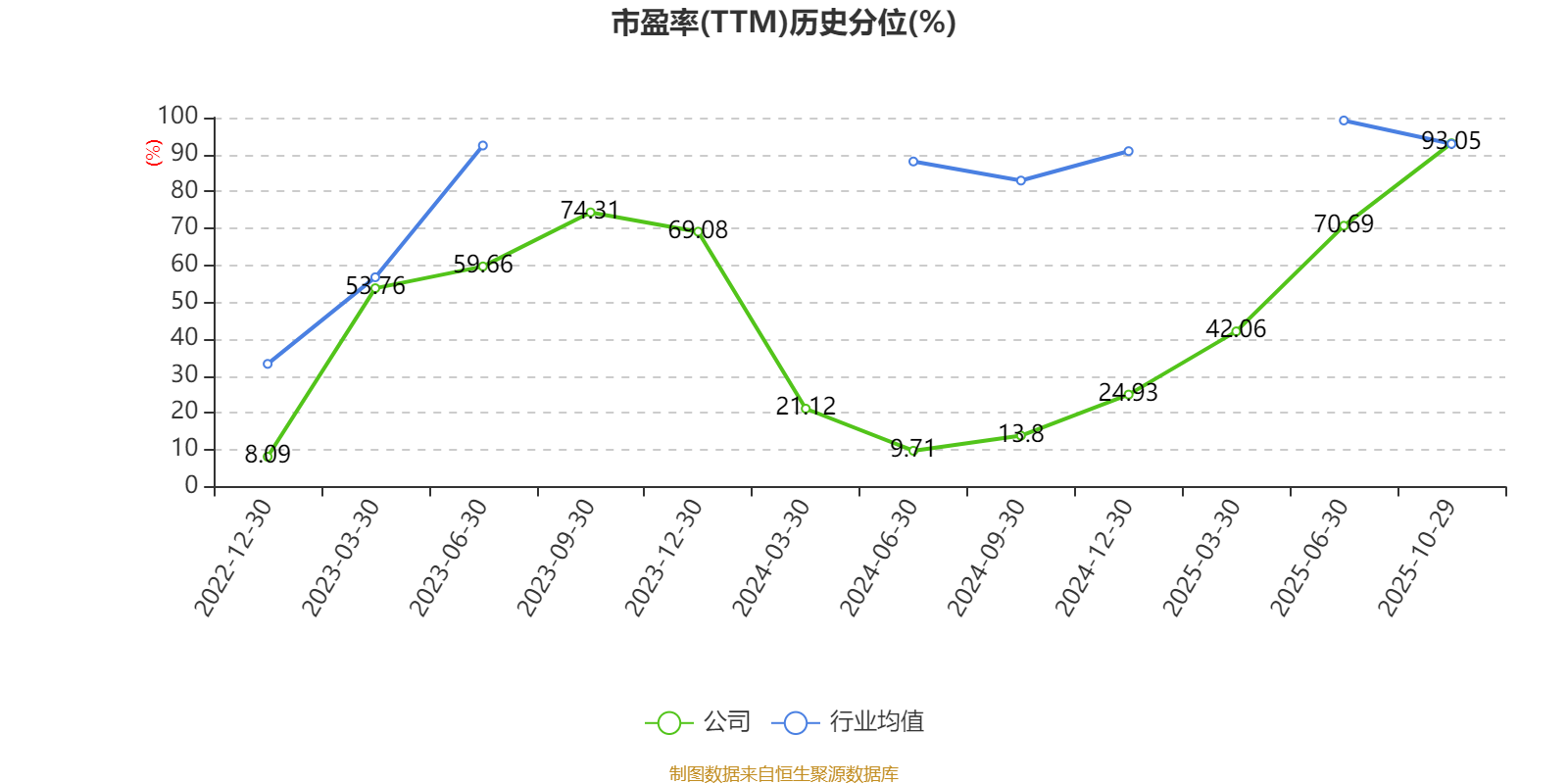 市盈率、市净率为负时,不显示当期分位数,会导致折线图中断。