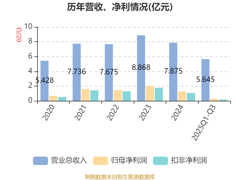 2025年前三季度,公司流动比率为8.84,速动比率为7.67。