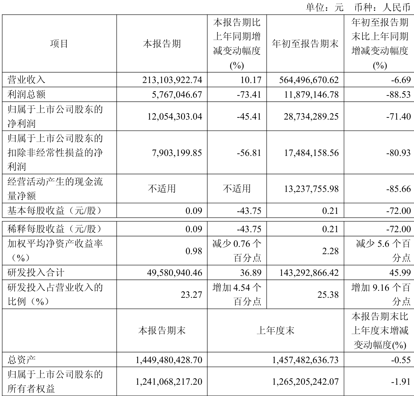 中证智能财讯力芯微(688601)10月30日披露2025年第三季度报告。前三季度公司实现营业总收入5.64亿元,同比下降6.69%;归母净利润2873.43万元,同比下降71.40%;扣非净利润1748.42万元,同比下降80.93%;经营活动产生的现金流量净额为1323.78万元,同比下降85.66%;报告期内,力芯微基本每股收益为0.21元,加权平均净资产收益率为2.28%。
