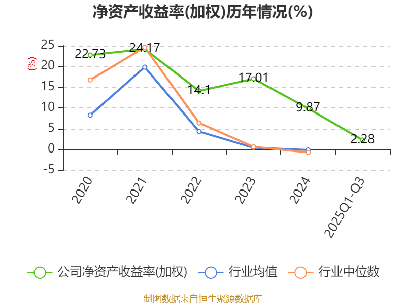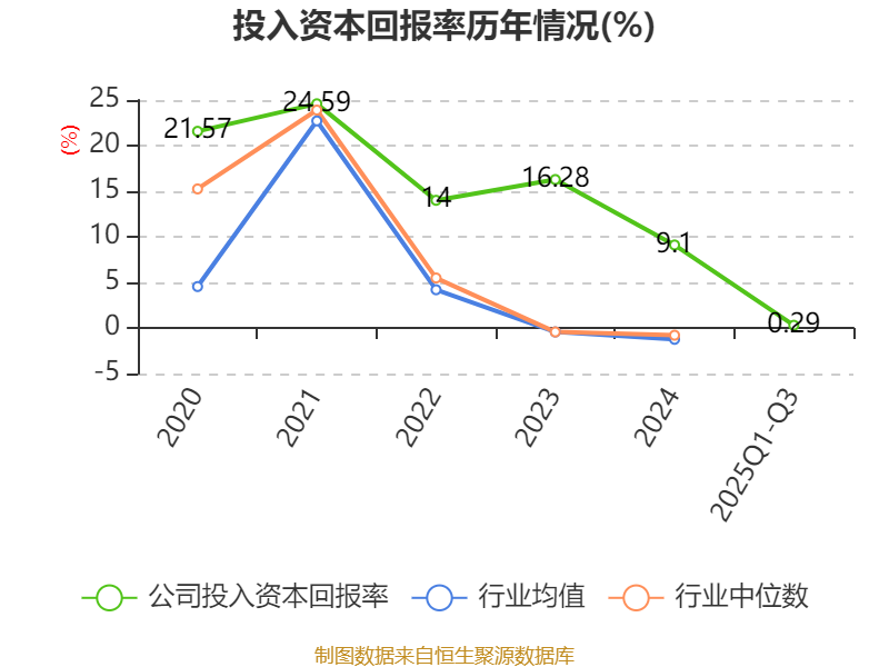 盈利能力方面, 2025年前三季度公司加权平均净资产收益率为2.28%,同比下降5.6个百分点。公司2025年前三季度投入资本回报率为0.29%,较上年同期下降6.93个百分点。