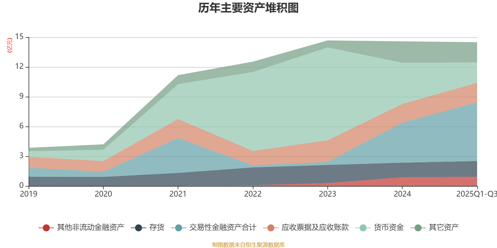 资产重大变化方面,截至2025年三季度末,公司货币资金较上年末减少50.76%,占公司总资产比重下降14.42个百分点;交易性金融资产合计较上年末增加46.33%,占公司总资产比重上升13.06个百分点;一年内到期的非流动资产较上年末减少100%,占公司总资产比重下降3.01个百分点;其他债权投资占公司总资产的1.4%,上年末为0。